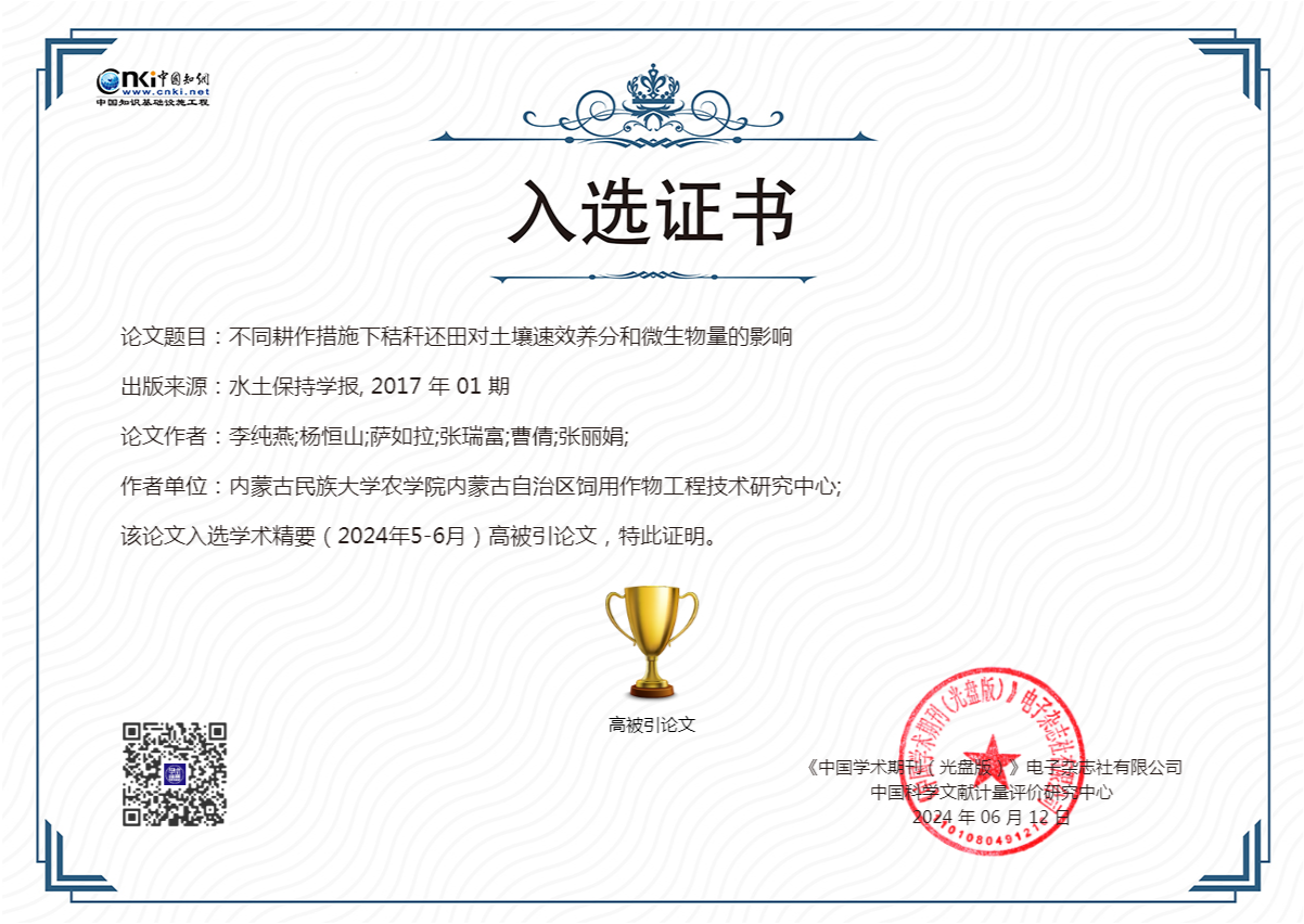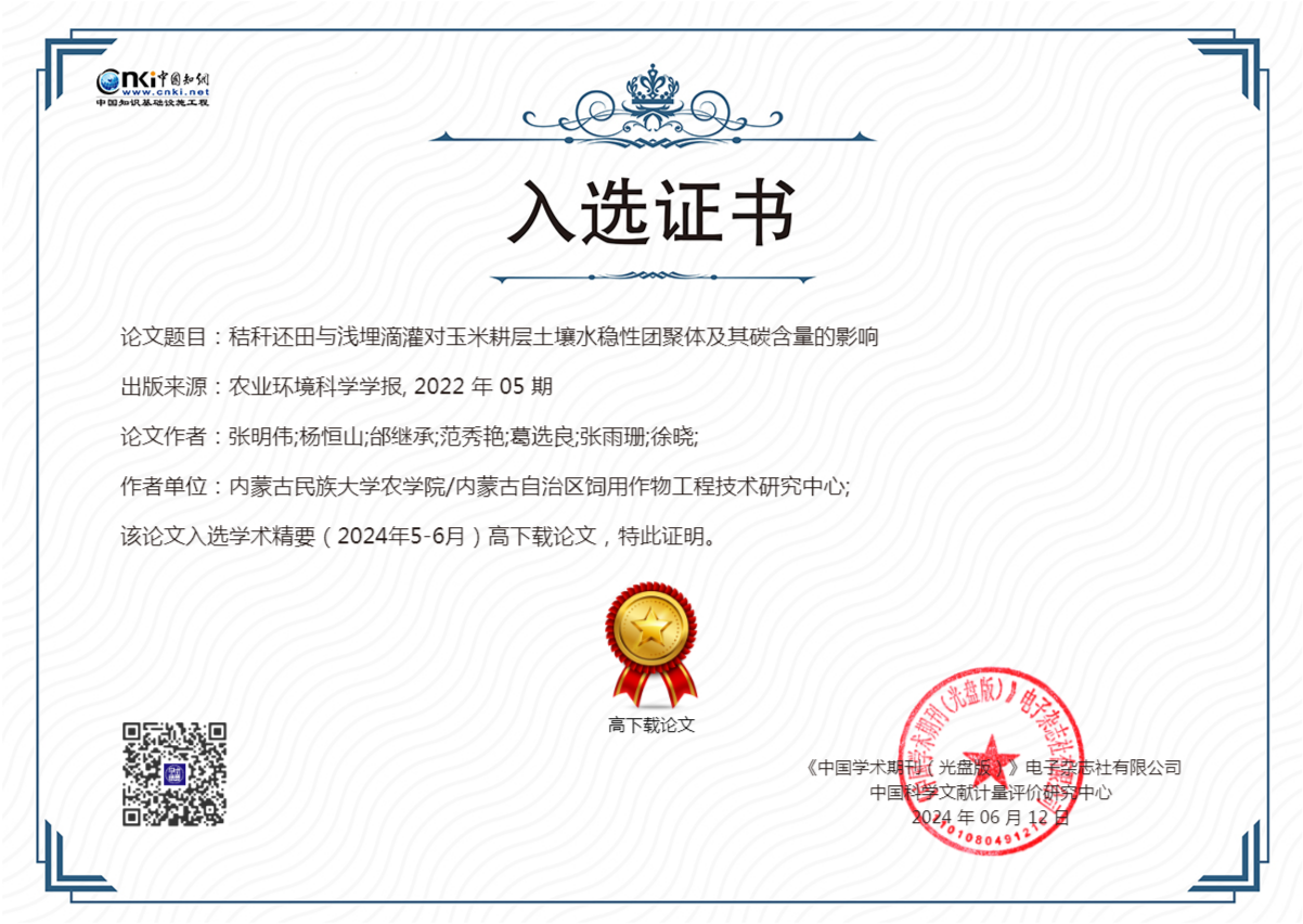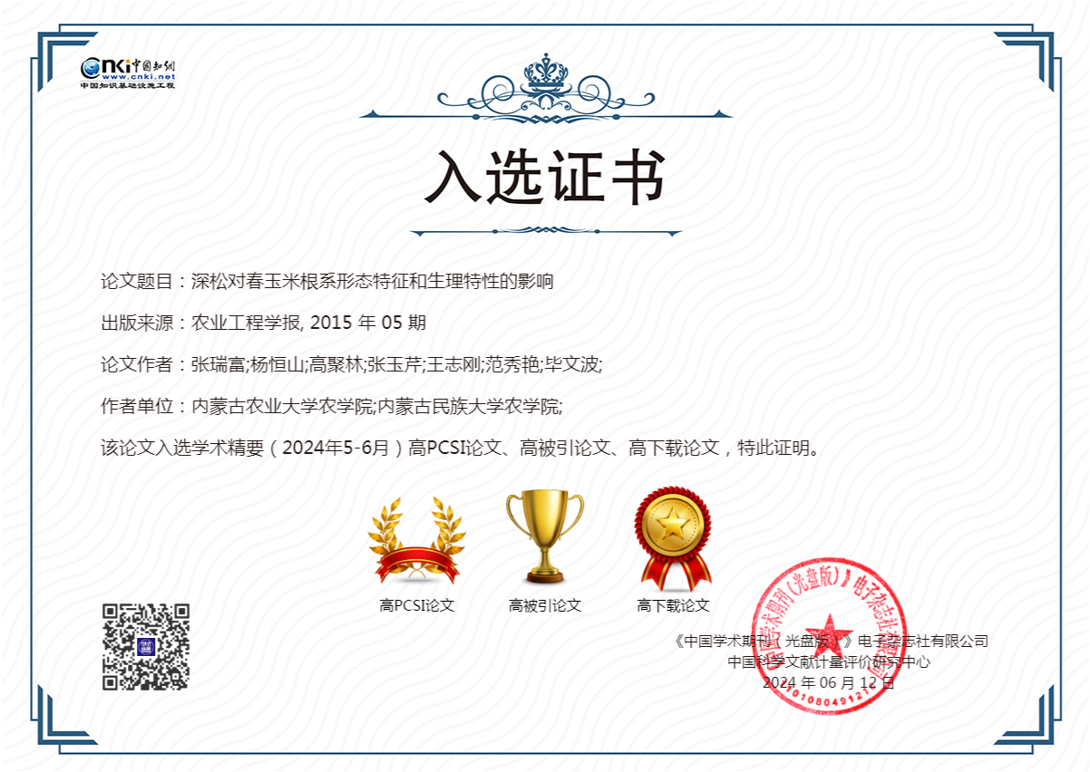 近日,中国知网《学术精要数据库》(2024年5-6月)发布高影响力论文最新数据,分别按照被引频次、PCSI指数(论文引证标准化指数)、下载频次遴选出各学科前1%的论文,即高被引论文、高PCSI论文及高下载论文。我院玉米团队4篇论文入选中国知网高质量论文、高被引论文和高下载论文,团队首席杨恒山教授入选2024年度知网高被引学者。团队多篇论文入选彰显了我院玉米团队在基础理论研究方面的较强研究实力。