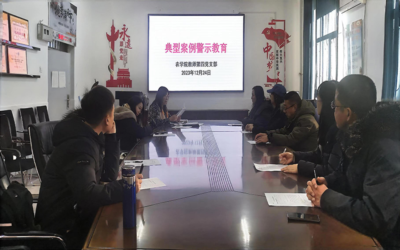 12月24日,农学院教师第四党支部及教研室相关成员于农学楼会议室召开警示教育会,支部书记贾俊英主持会议。