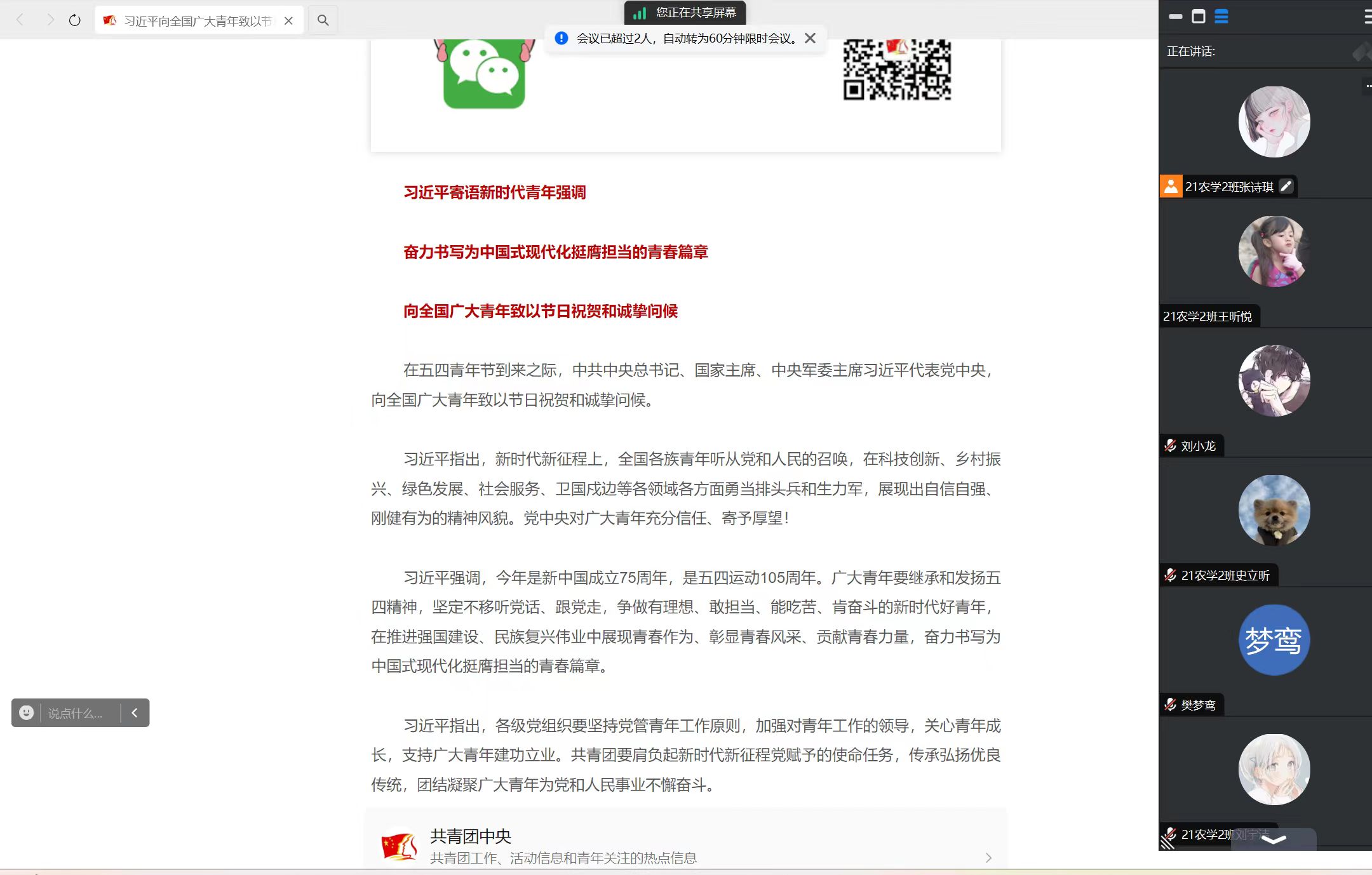 为深入学习和贯彻习近平总书记关于五四青年节重要寄语精神,进一步凝聚青年力量,激励广大青年积极投身祖国建设与发展之中。5月13日–15日,农学院团总支组织各团支部开展“学习贯彻习近平总书记五四寄语精神”主题团日活动。