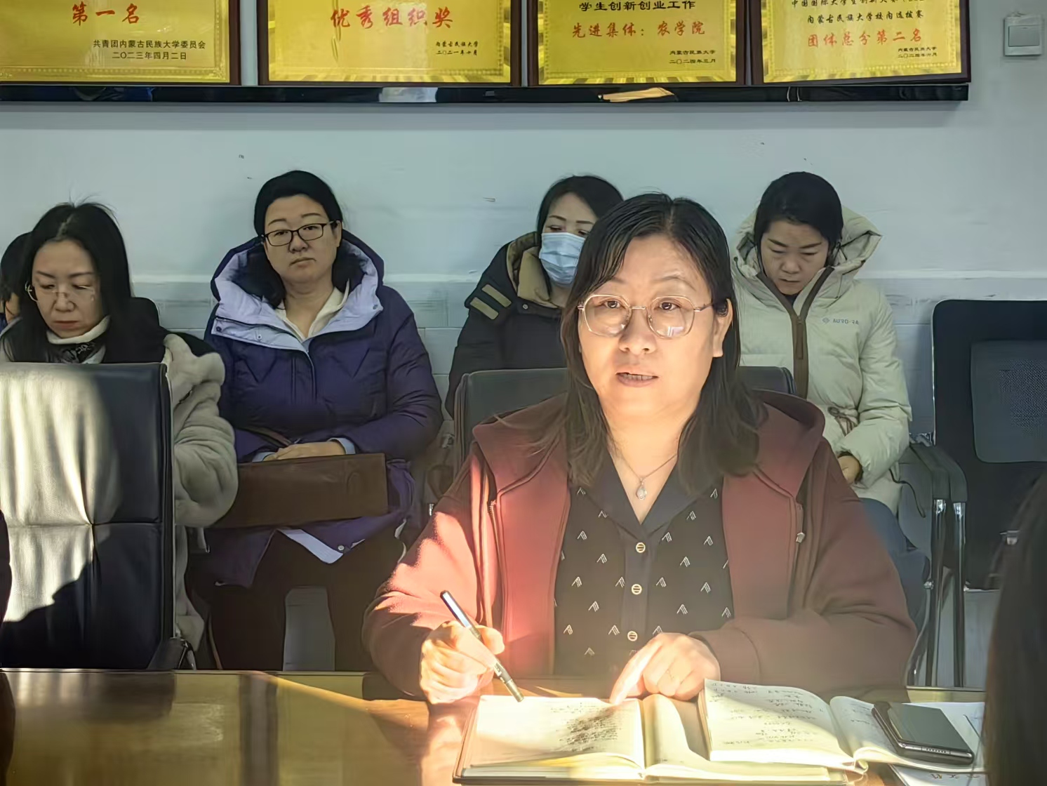 1月7日上午,农学院在农学楼110会议室召开2025年初第一次全院教职工会议,安排布置学期末及假期相关工作,谋划2025年工作。学院领导班子成员、全体教职工参加会议。会议由学院党委书记张晓丽主持。